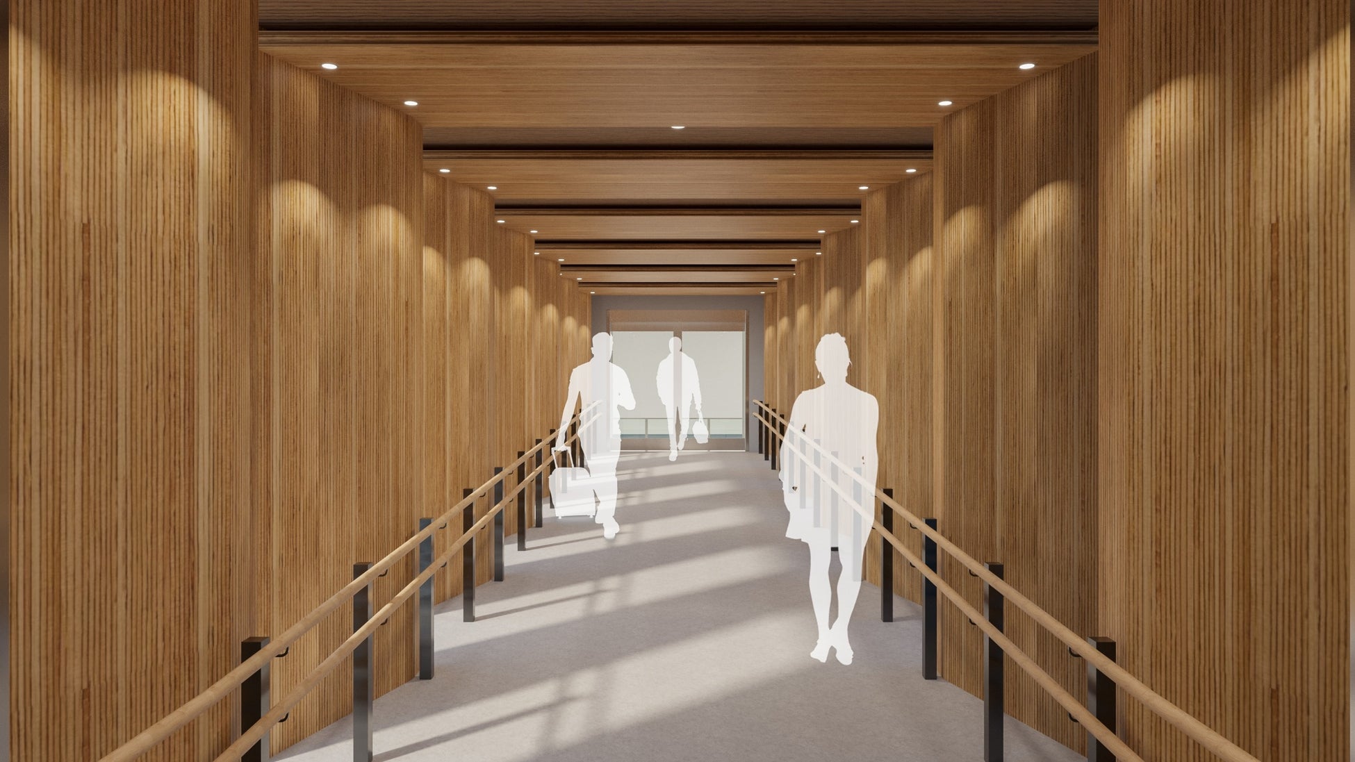 木造部分には、「大断面集成材」および「CLT材」「LVL材」を使用。また、木材本来の自然の色と質感を活かした心地よい空間づくりを目指します。