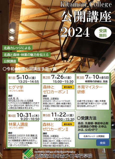 北海道立北の森づくり専門学院(略称:北森カレッジ)では、地域のみなさまへの学びの場の提供などを通じて社会に貢献することを目的として今年度も公開講座を開催(全5回を予定)します。